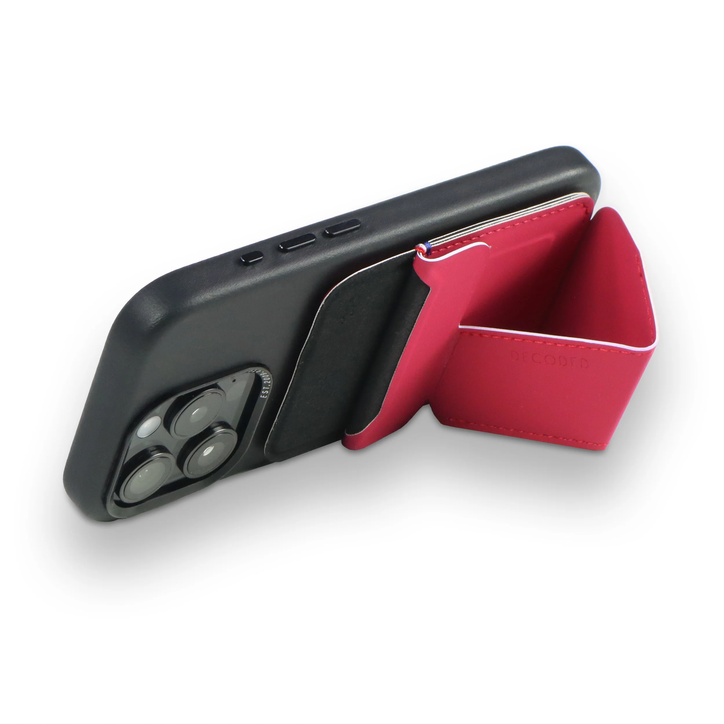 The Silicone MagSafe Card Stand Wallet features strategically positioned magnets and anti-slip technology. These elements ensure a secure attachment to the back of your iPhone or MagSafe Back Cover, preventing any inadvertent slips or loss of your cards.